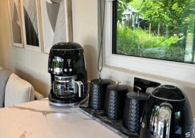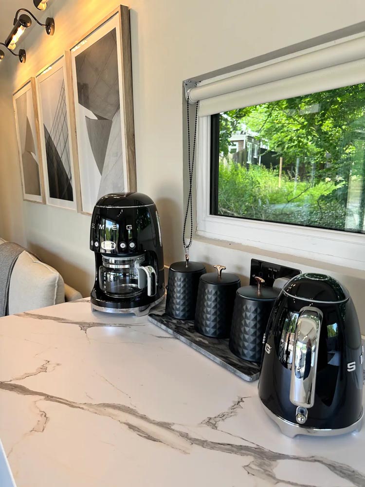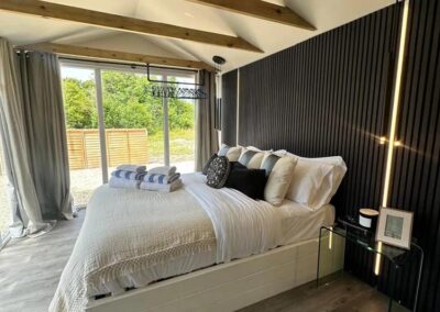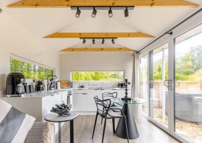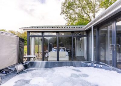 Inside, unwind in front of the TV on the plush velvet sofa or snuggle up in the comfortable double bed. Enjoy the serene views of the garden from the large windows or step outside to the private, fenced garden where you can relax in the outdoor hot tub under the stars.