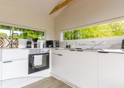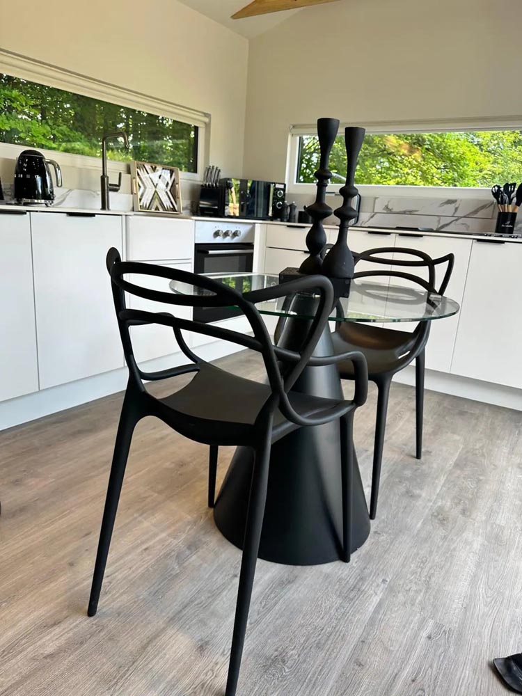 The open-plan kitchen and dining area are thoughtfully designed, providing a perfect space to prepare and enjoy meals without distraction. Every detail has been carefully considered to ensure you have a comfortable and memorable stay.
