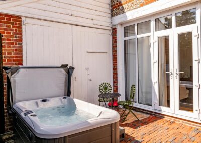 Outside, you have your own spacious, secluded patio with a hot tub and private access to the estate’s woodland. Providing ample opportunity for nature walks when you’re not busy relaxing.